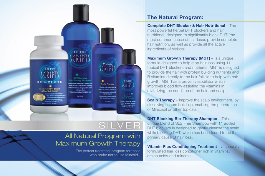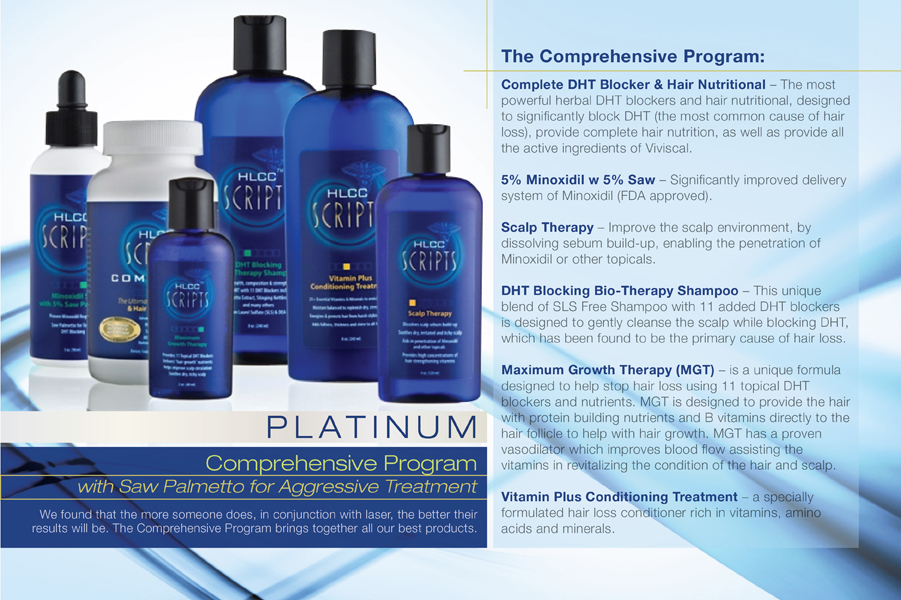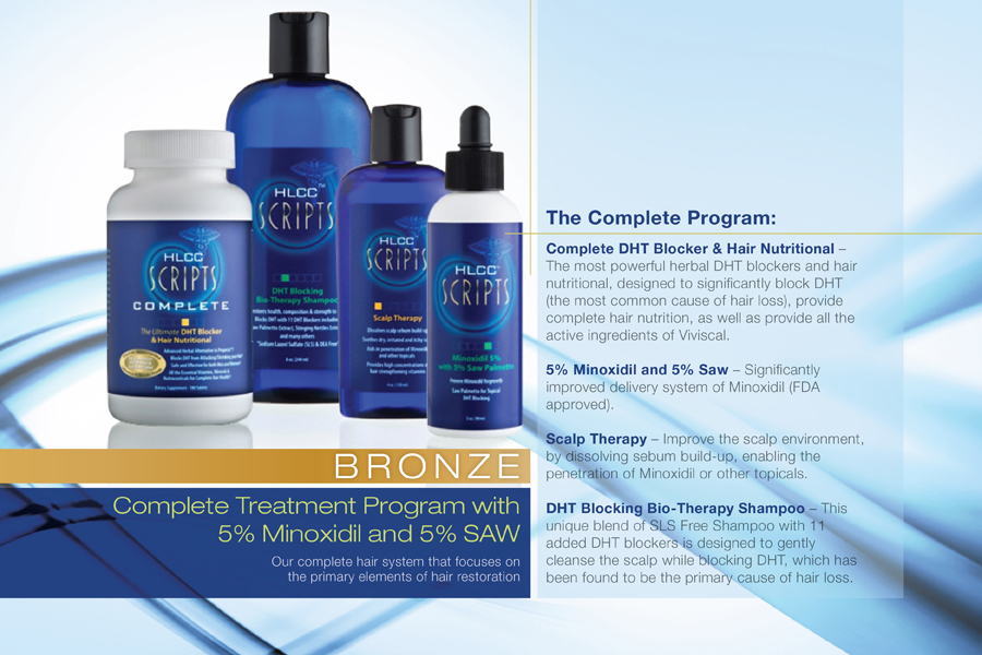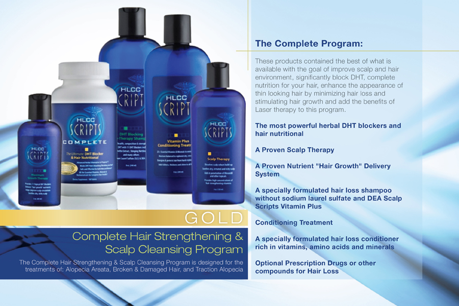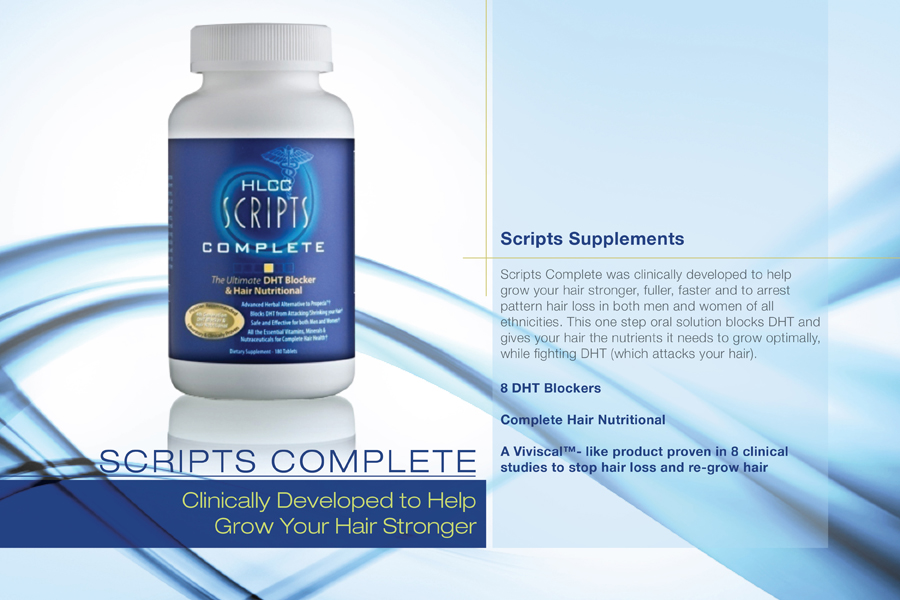HLCC™ Scripts Complete was clinically developed to help grow your hair stronger, fuller, faster and to arrest pattern hair loss in both men and women of all ethnicities. This one step oral solution blocks DHT and gives your hair the nutrients it needs to grow optimally, while fighting DHT (which attacks your hair).