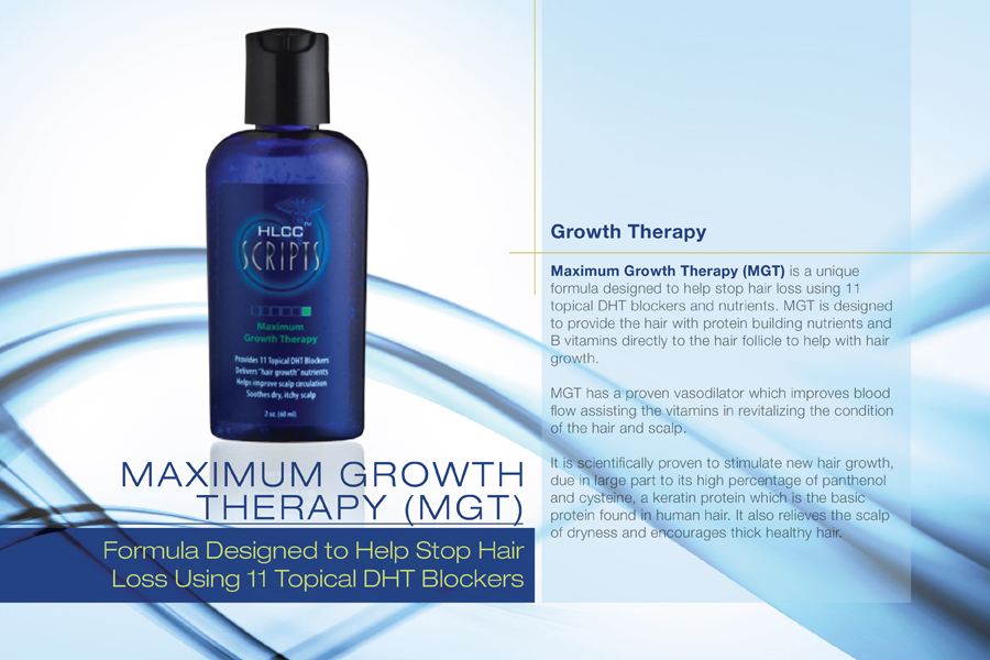 This is a unique formula designed to help stop hair loss using 11 topical DHT blockers and nutrients. MGT is designed to provide the hair with protein building nutrients and B vitamins directly to the hair follicle to help with hair growth.